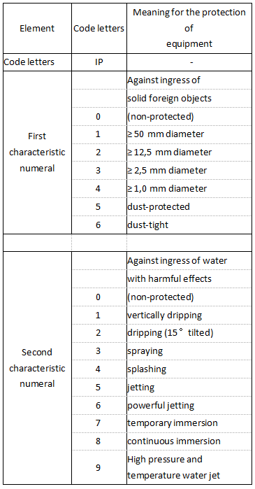 आईपी कोड विवरण क्या है। आईपी का मतलब है सुरक्षा संरक्षण, और अंतर्राष्ट्रीय इलेक्ट्रोटेक्निकल कमीशन (आईईसी) द्वारा तय किया गया था।